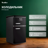 • Холодильник Tesler RT-95 выполнен в стиле ретро, и доступен в нескольких цветах: черный, бежевый, зеленый, красный, песочно-серый и желтый.
