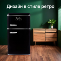 Холодильник Tesler RT-95 сочетает в себе надежное охлаждение, элегантность и функциональность. Выполненный в ретро-стиле, он придаёт особый шарм пространству вокруг, что делает его идеальным дополнением к кухне. Благодаря небольшим размерам он может быть установлен даже в ультракомпактных пространствах.