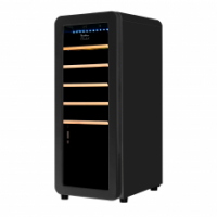 Преимуществом системы охлаждения данной модели является наличие компрессора, который использует хладагент для охлаждения внутреннего пространства, что обеспечивает стабильное поддержание температуры. Динамическая система охлаждения равномерно распределяет холод, что позволяет избежать застаивания запахов, и поддерживает постоянный уровень влажности. Температура внутри шкафа не зависит от температуры окружающей среды. Диапазон поддерживаемой температуры от 5 °C до 20°C помогает создать идеальные условия для хранения вина.