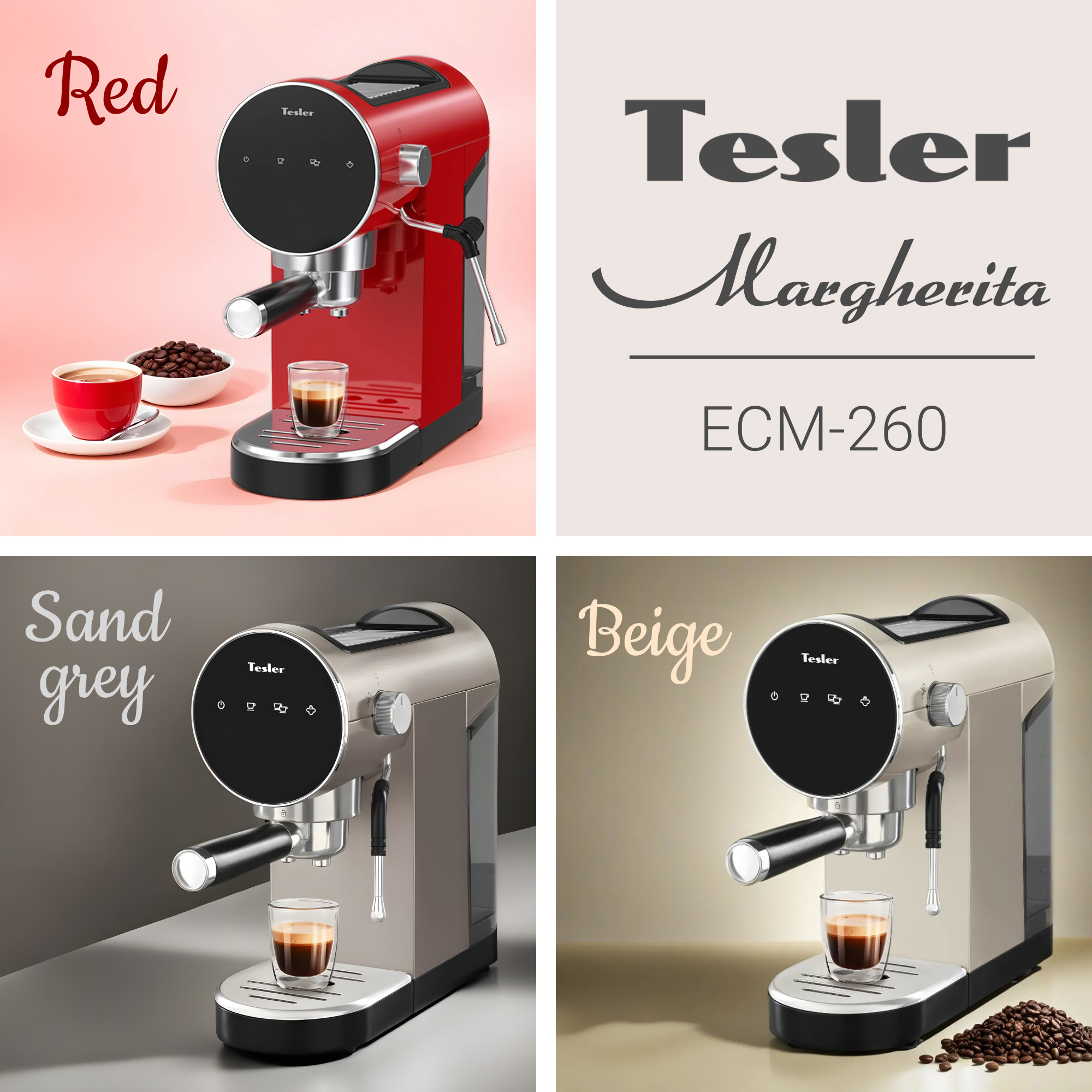 С Tesler ECM-260 вы сможете наслаждаться каждой каплей вашего любимого кофе, и создавать разнообразные кофейные напитки, которые удовлетворят даже самых требовательных ценителей кофе. Модель выпускается в бежевом, красном и сером цветах.