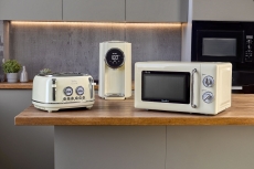 В коллекцию кухонной техники Tesler Elizabeth входят: СВЧ-печь, чайник, кофемашина и тостер.