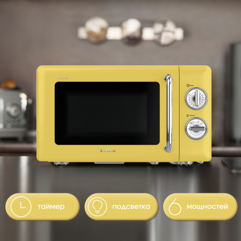 Микроволновая печь Tesler MM-2045 из серии Elizabeth – это простая и надёжная механическая СВЧ, в которой предусмотрено несколько режимов мощности, таймер и система равномерного распределения микроволнового излучения. Вместительная (20 литров) при компактном размере, она легко впишется в интерьер вашей кухни и не займет много места. Корпус из высококачественной стали дополнен ручками установки таймера и мощности в стиле винтажных переключателей "реле".