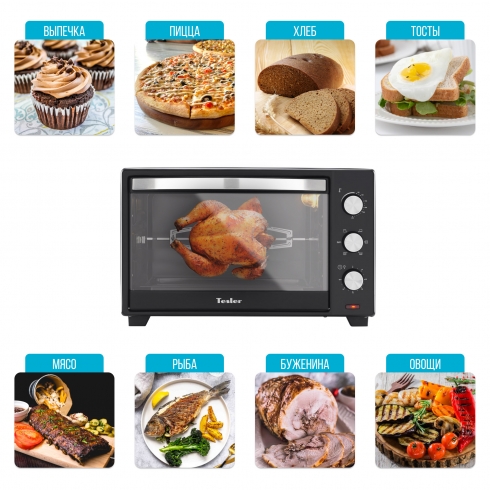 Быстро приготовить картофель или курицу до румяной корочки, или испечь потрясающий торт теперь не проблема – мини-печь Tesler EOG-4800 в стильном корпусе черного цвета готова на любые гастрономические эксперименты!