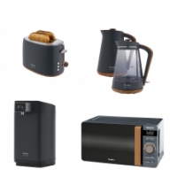 В комплект кухонной техники Tesler INGRID входят 4 устройства: СВЧ-печь, чайник, тостер и термопот.