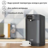 Корпус термопота выполнен из матового приятного на ощупь пластика, а внутренняя колба - из нержавеющей стали высокого качества. Пользоваться прибором легко: наполните резервуар термопота, установите температуру и подождите пару минут – в вашем распоряжении будут 4,5 литра воды нужной температуры.