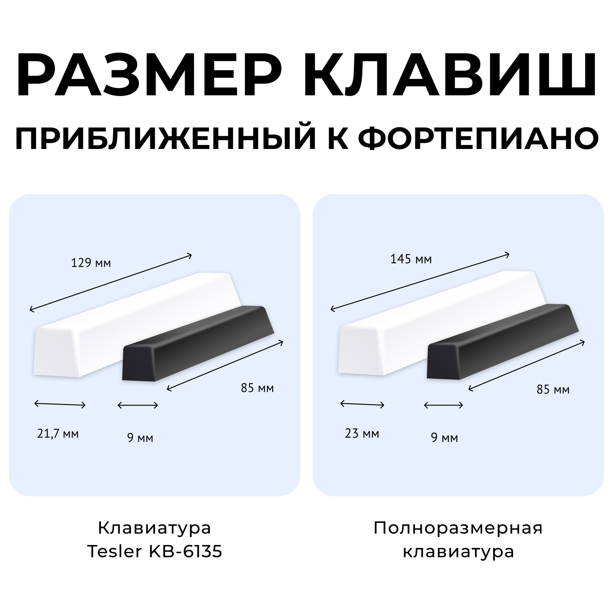 Синтезатор Tesler KB-6135 подходит для начального уровня благодаря понятному управлению и наличию обучающих программ.