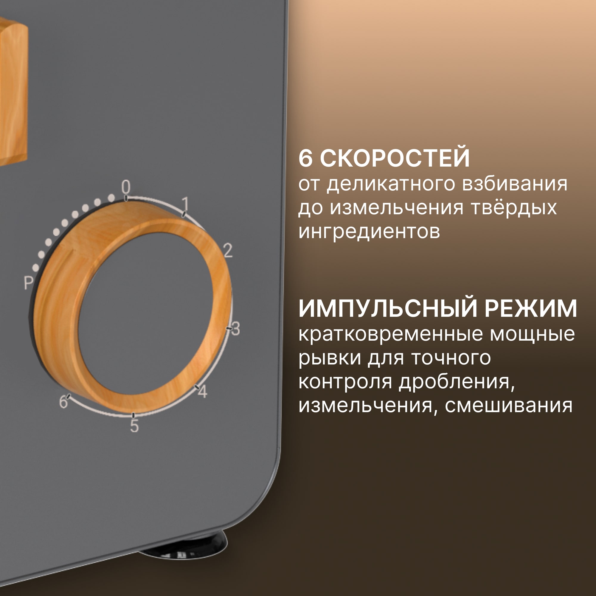 • 6 скоростей для разных этапов приготовления - от лёгкого взбивания до плотного замеса.