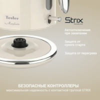 • Английский контроллер STRIX гарантирует автоотключение при закипании, отсутствии воды и при снятии с подставки.
