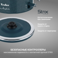 • Английский контроллер STRIX гарантирует автоотключение при закипании, отсутствии воды и при снятии с подставки.