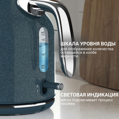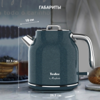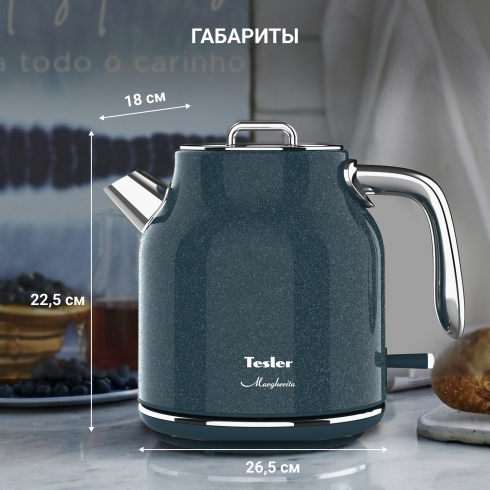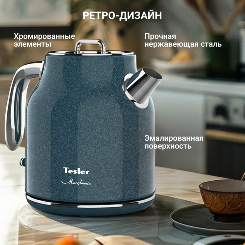 Электрический чайник Tesler Margherita  KT-1756 — техника, в которой современный минимализм сочетается с мягкими ретро-линиями. Лаконичная форма, хромированные детали и приглушенные гармоничные оттенки делают модель выразительным акцентом кухни, а продуманная конструкция отвечает за уверенное и безопасное использование.