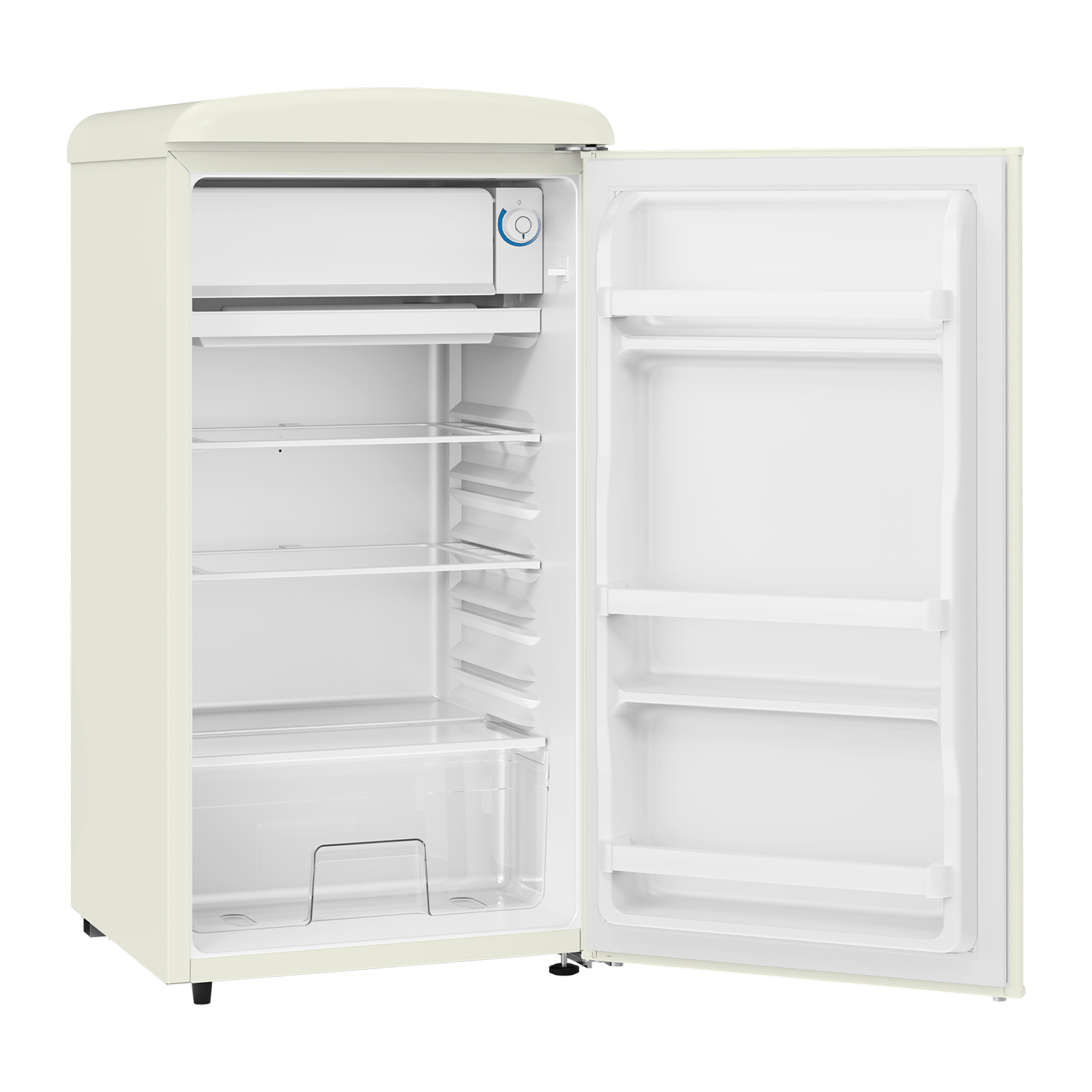 • Отдельностоящий холодильник Tesler RT-95 сочетает в себе классический ретро-дизайн и современные функции.