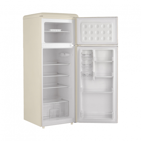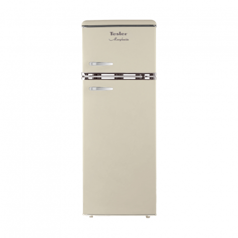 Tesler RT-215 сочетает в себе надежное охлаждение, элегантность и функциональность. Выполненный в ретро-стиле, он придаёт особый шарм пространству вокруг, что делает его идеальным дополнением к кухне. Хромированные ручки с надёжным креплением не ослабнут независимо от того, как часто вы открываете дверцы.