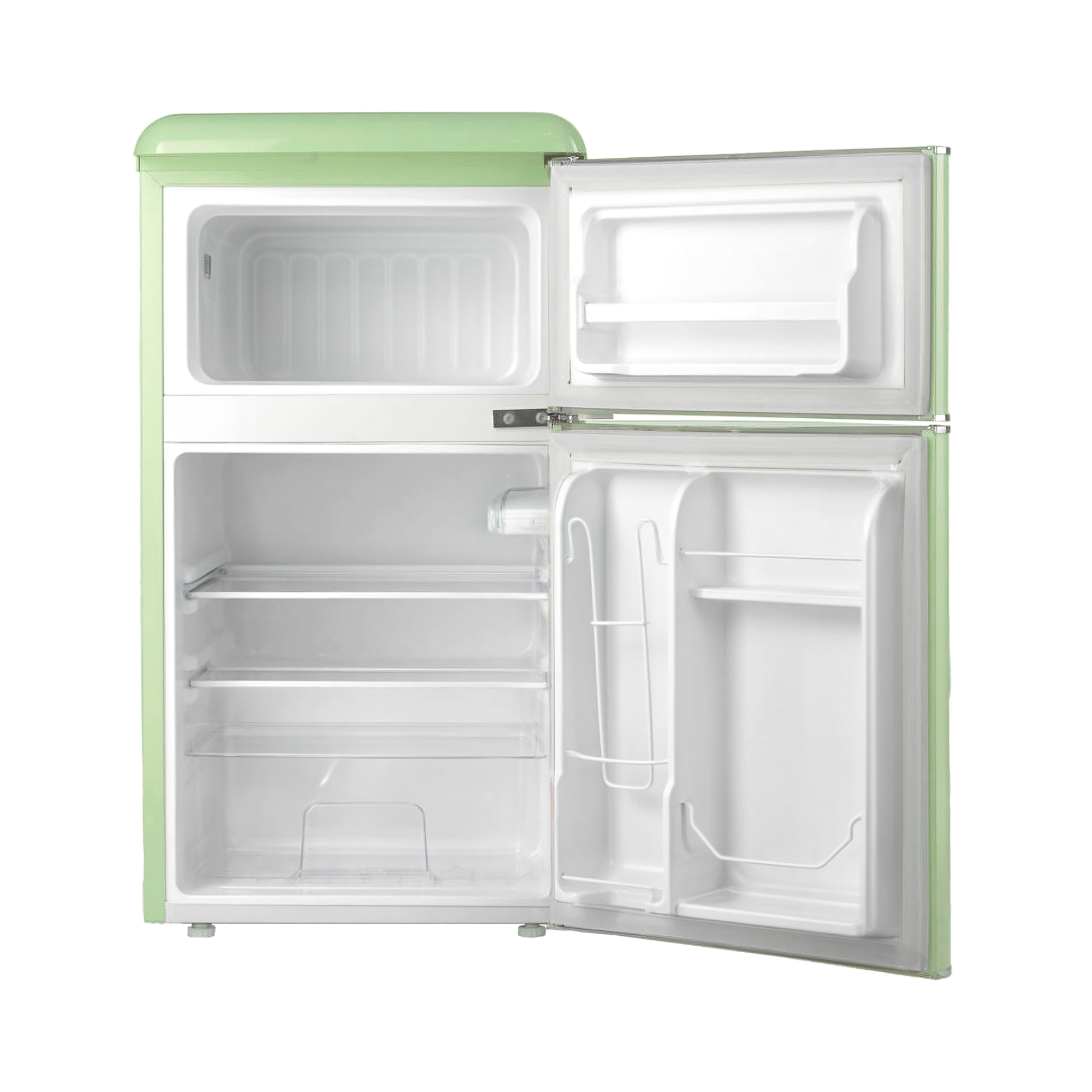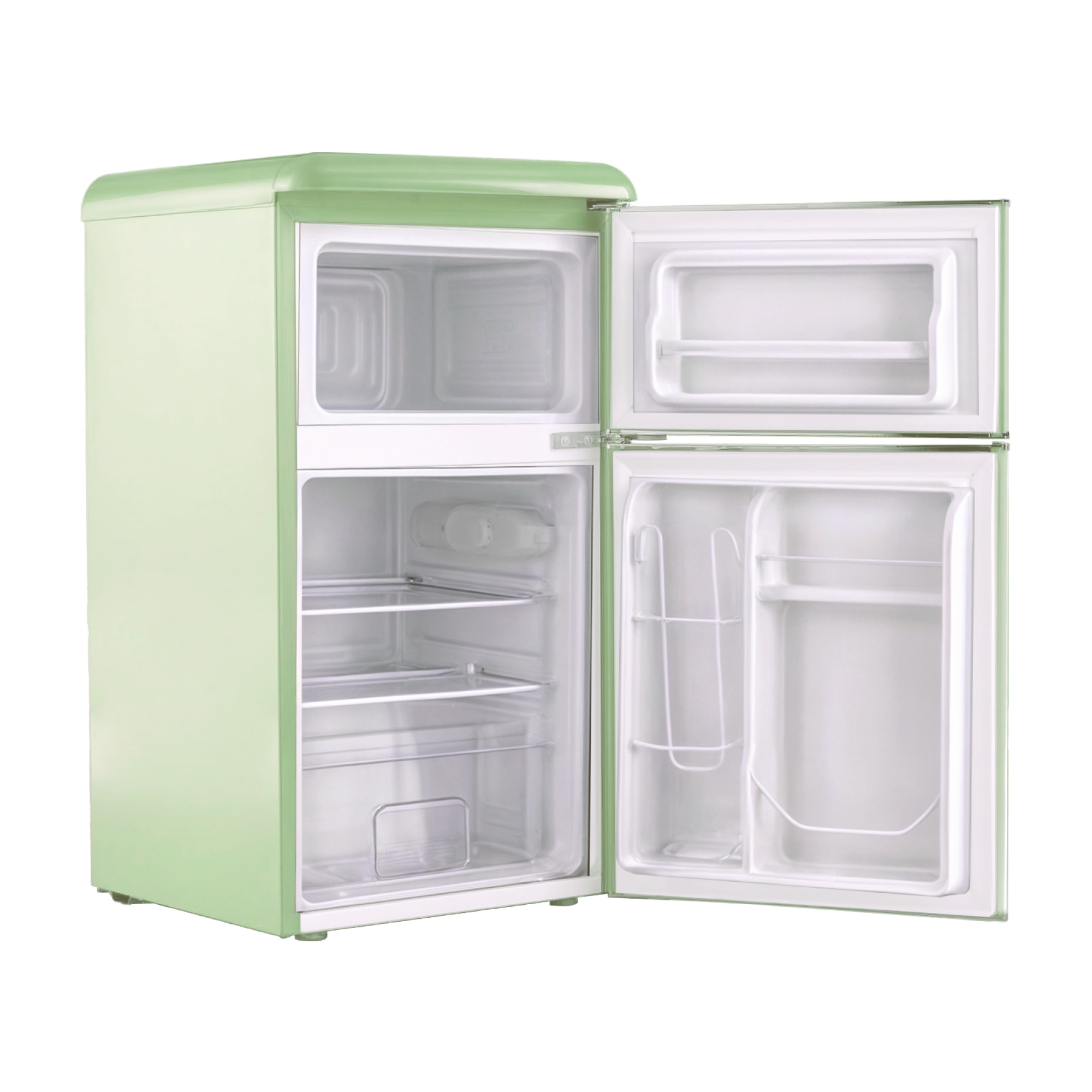 • Отдельностоящий холодильник Tesler RT-95 сочетает в себе классический ретро-дизайн и современные функции.