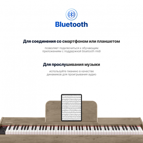* В моделях, выпущенных во второй половине 2024 года, предусмотрен модуль Bluetooth для сопряжения со смартфоном/планшетом. При этом он может подключаться к ПО для обучения игре на пианино с поддержкой Bluetooth MIDI на сопряженном устройстве. При Bluetooth-подключении инструмент также может быть использован в качестве внешних динамиков для проигрывания аудио.