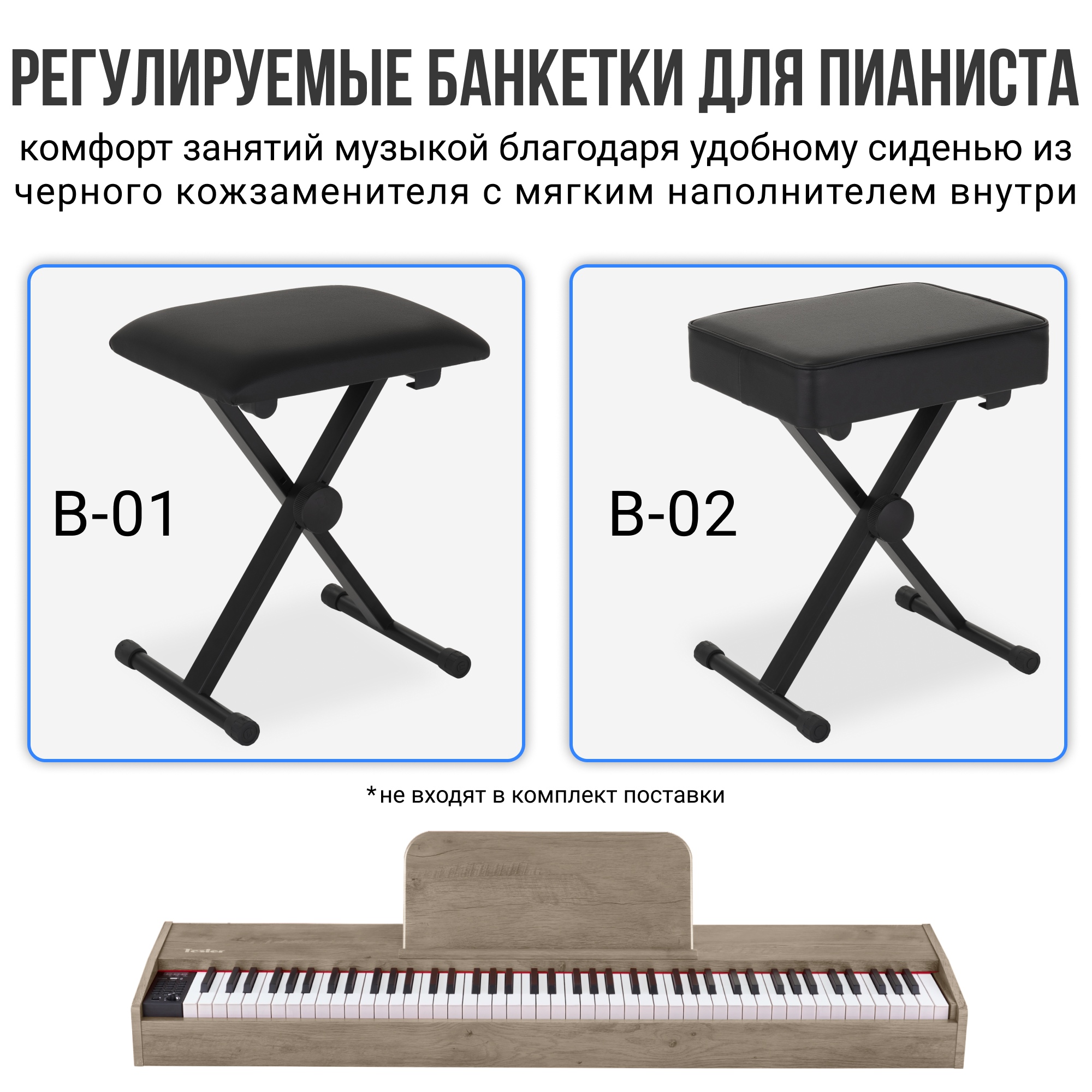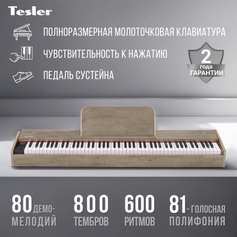 • Цифровое пианино Tesler STZ-8805 SMOKY OAK — это профессиональный музыкальный инструмент с полноформатной взвешенной клавиатурой на 88 клавиш.