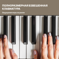 Полноразмерная молоточковая клавиатура с 88 клавишами обеспечивает реалистичное сопротивление благодаря пружинно-рычажному механизму. Градуированная механика создает дифференцированное усилие нажатия: клавиши нижнего регистра требуют более сильного воздействия, верхнего — более легкого, что позволяет точно контролировать динамику и нюансы звукоизвлечения. Функция чувствительности к нажатию позволяет точно регулировать динамику звука в зависимости от силы удара по клавишам.