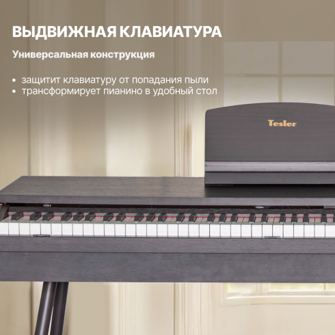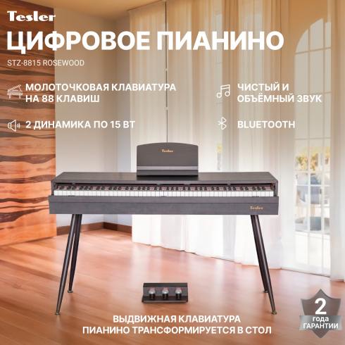 • Цифровое пианино Tesler STZ-8815 — это современный музыкальный инструмент с полноформатной взвешенной клавиатурой на 88 клавиш.