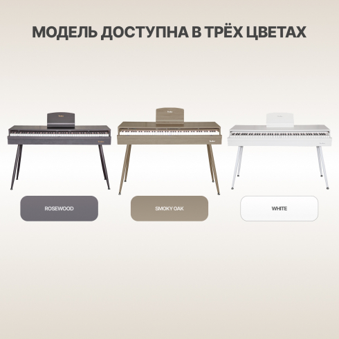• Модель доступна в трёх цветовых исполнениях: белый матовыйпалисандр и дымчатый дуб.