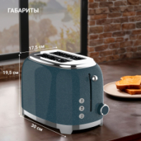 Управление сосредоточено на боковой панели со световой индикацией. Корпус из нержавеющей стали оснащён двумя отделениями с автоматическим центрированием ломтиков для равномерной прожарки, а система термозащиты и автоотключения обеспечивает безопасную работу устройства.