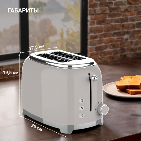 Модель Tesler TT-260 из линейки кухонных приборов Margherita сочетает в себе лаконичный дизайн с чистыми линиями и продуманную функциональность. Мощность 815 Вт обеспечивает ускоренное подрумянивание, мягкий подогрев и бережную разморозку хлеба.