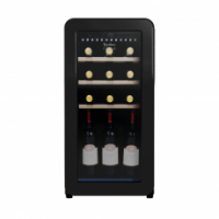 Преимуществом системы охлаждения данной модели является наличие компрессора, который использует хладагент для охлаждения внутреннего пространства, что обеспечивает стабильное поддержание температуры. Динамическая система охлаждения равномерно распределяет холод, что позволяет избежать застаивания запахов, и поддерживает постоянный уровень влажности. Температура внутри шкафа не зависит от температуры окружающей среды. Диапазон поддерживаемой температуры от 5 °C до 20°C помогает создать идеальные условия для хранения вина.