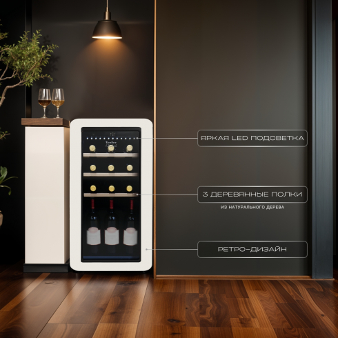 Представляем вашему вниманию уникальный винный шкаф, который станет настоящим украшением кухни или гостиной. Этот стильный и функциональный аксессуар сочетает в себе все преимущества современного винного холодильника и неповторимый ретродизайн, вдохновлённый стилем 60-х годов. Винный шкаф холодильник Tesler использует современные технологии для хранения вашей коллекции вина. Вместимость шкафа составляет 18 бутылок – оптимальное количество для домашнего использования или небольшого бара.