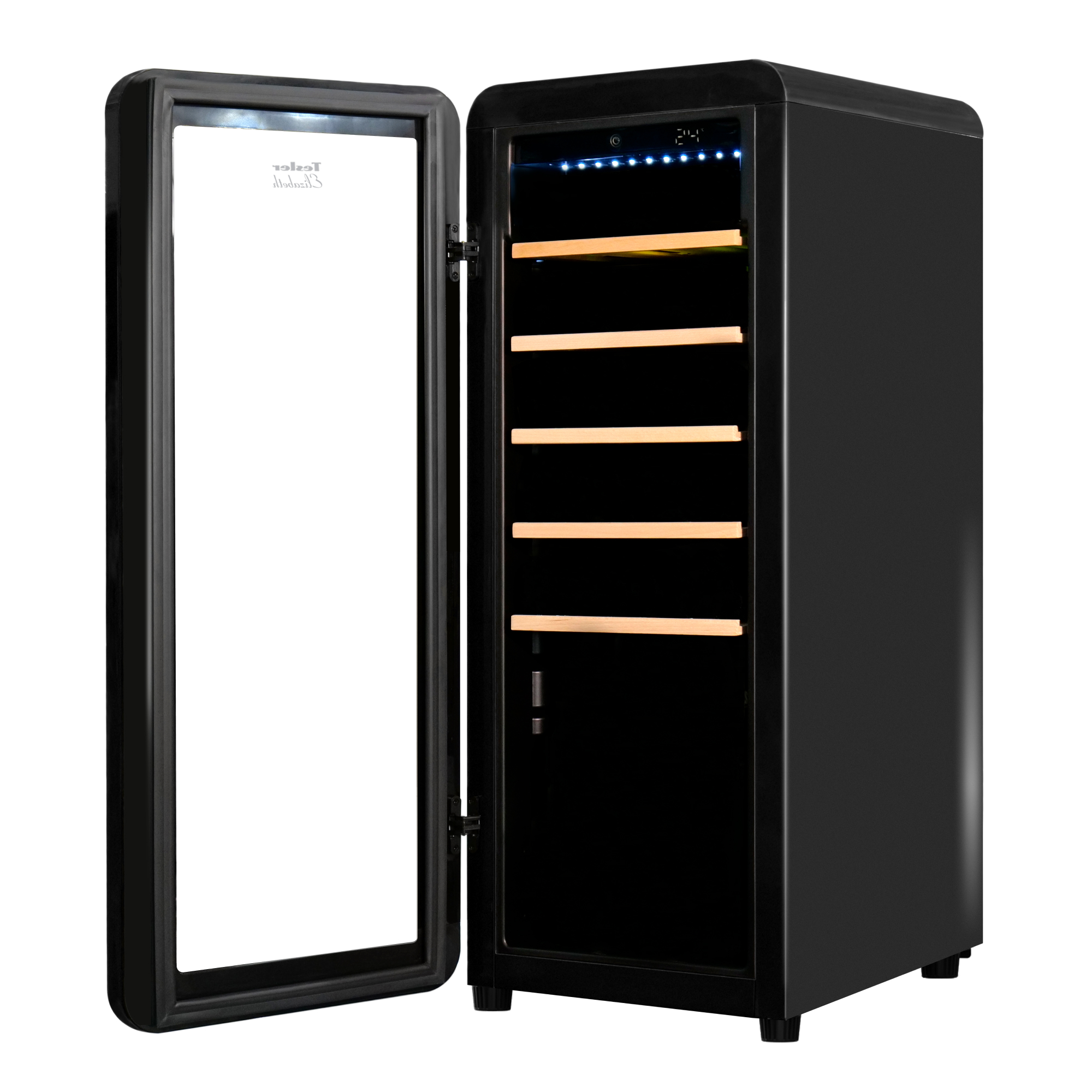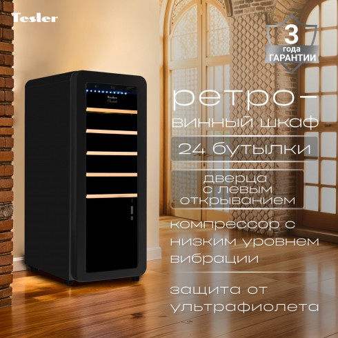 • Tesler CWC-248 — компрессорный отдельностоящий винный шкаф вместимостью 24 бутылки.