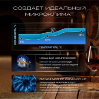 • Диапазон поддерживаемой температуры – от 5°C  до 20 °C, что позволяет хранить любые сорта вина.