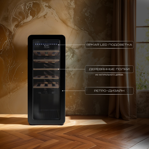 Представляем вашему вниманию уникальный винный шкаф, который станет настоящим украшением вашей кухни или гостиной. Этот стильный и функциональный аксессуар сочетает в себе все преимущества современного винного холодильника и неповторимый ретродизайн, вдохновлённый стилем 60-х годов. Винный шкаф холодильник Tesler использует современные технологии для хранения вашей коллекции вина. Вместимость шкафа составляет 24 бутылок – оптимальное количество для домашнего использования или небольшого бара.