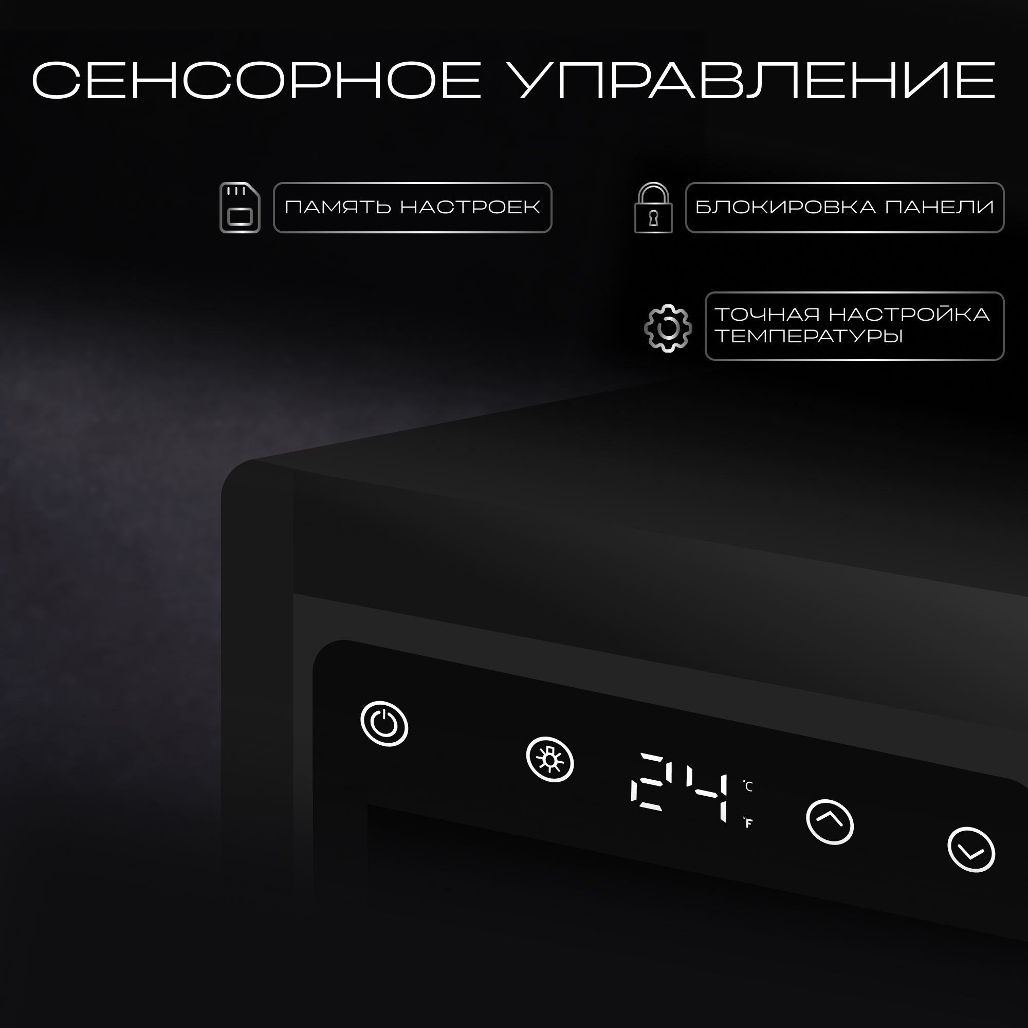 Устройство оснащено LED дисплеем и удобным сенсорным управлением. Функция блокировки панели управления обеспечивает защиту настроек и дополнительную безопасность.