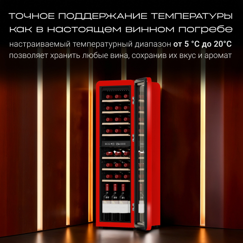 • Диапазон поддерживаемой температуры – от 5°C  до 20 °C, что позволяет хранить любые сорта вина.