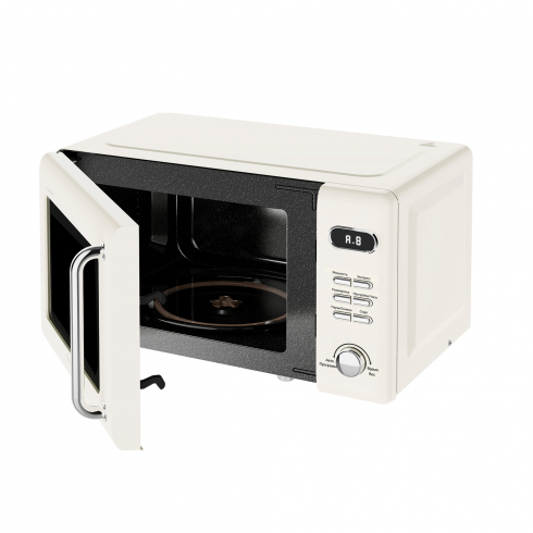 Энергопитание от стандартной сети 220 В. Конструкция оснащена ротационным механизмом с рабочей поверхностью 28 см, обеспечивающим симметричный прогрев пищевых продуктов за счет циклического перемещения в камере.