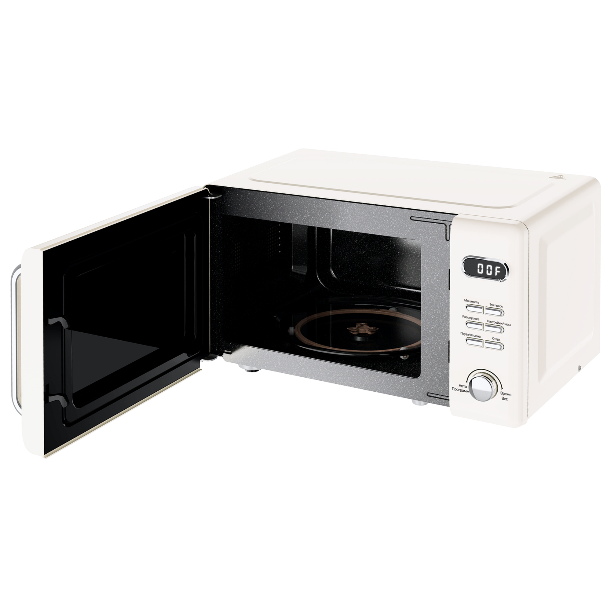 Объем камеры микроволновой печи составляет 20 литров, что создает оптимальное соотношение функциональной вместимости и компактности размещения. Конфигурация внутреннего пространства допускает использование стандартной посуды диаметром до 25 см, прямоугольных контейнеров 18×23 см, а также посуду высотой до 15 см.