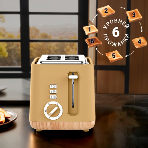 Тостер Tesler TT-244 из коллекции INGRID - функциональное и стильное решение для приготовления тостов. Модель воплощает лаконичный скандинавский дизайн, отличающийся чистыми линиями, декоративной вставкой под дерево и функциональностью. Устройство мощностью 815 Вт осуществляет быстрое поджаривание, разогрев или деликатную разморозку хлебных ломтиков. Шесть программных режимов позволяют настроить нужную степень прожарки — от нежной корочки до хрустящей текстуры.