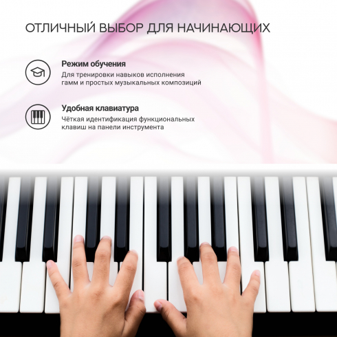 - качественное звучание, 54 клавиши, 255 тембров, 300 ритмов, 24 демо мелодии;