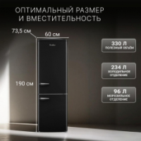 • ХолодильникTesler RB-330 выполнен в ретро стиле и представлен в четырёх трендовых цветах:классический чёрныйслоновая костьпыльная розазелёный мятныйлавандовый и красная вишня.