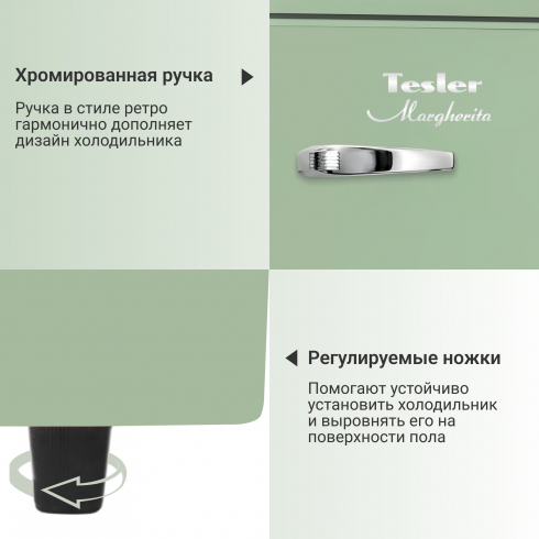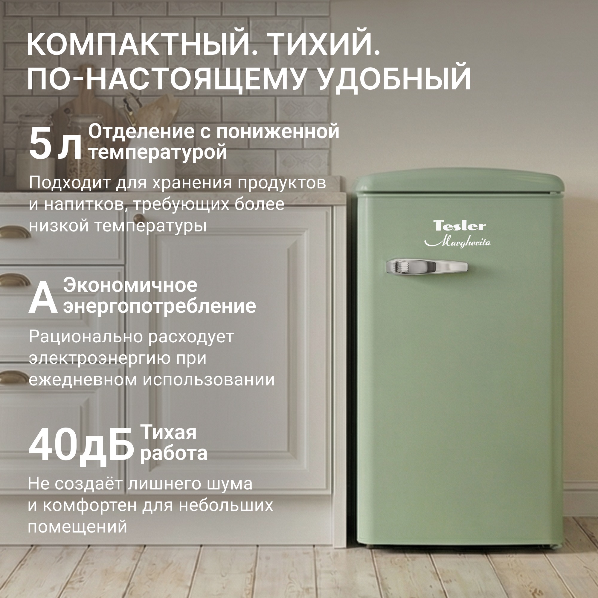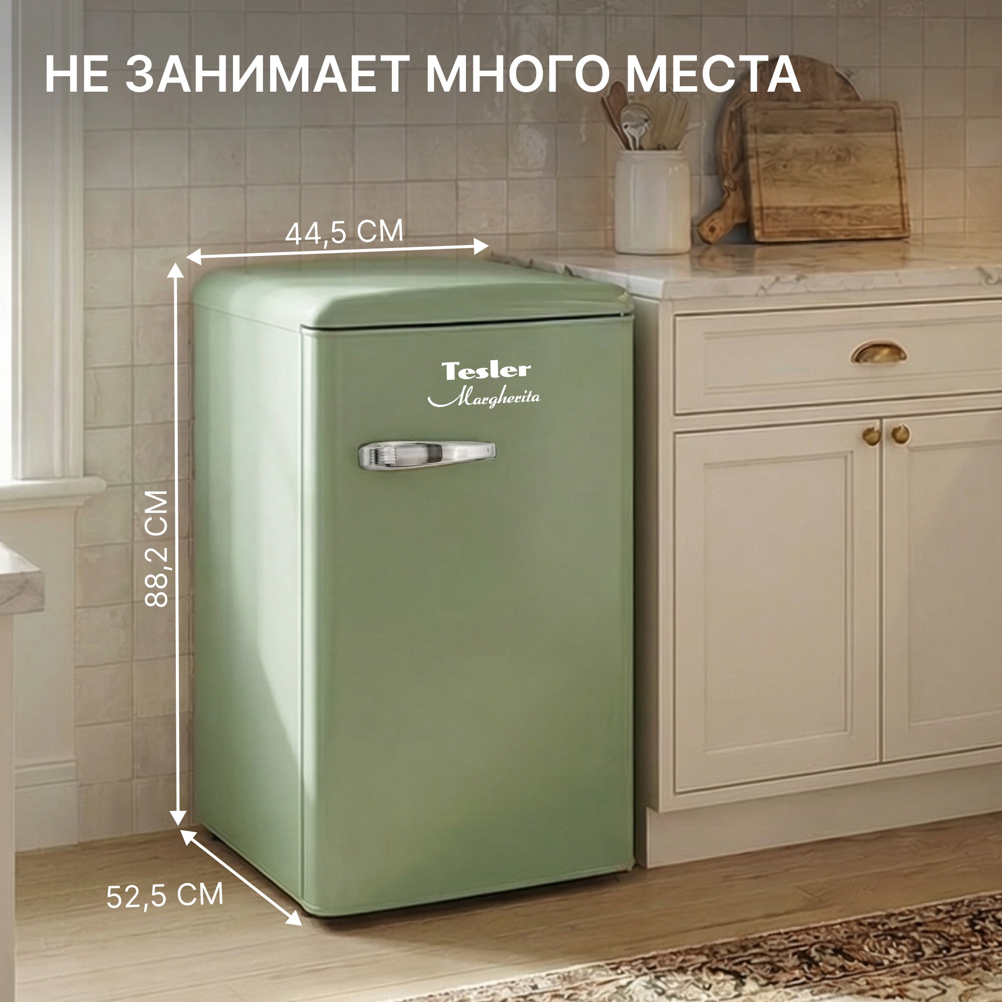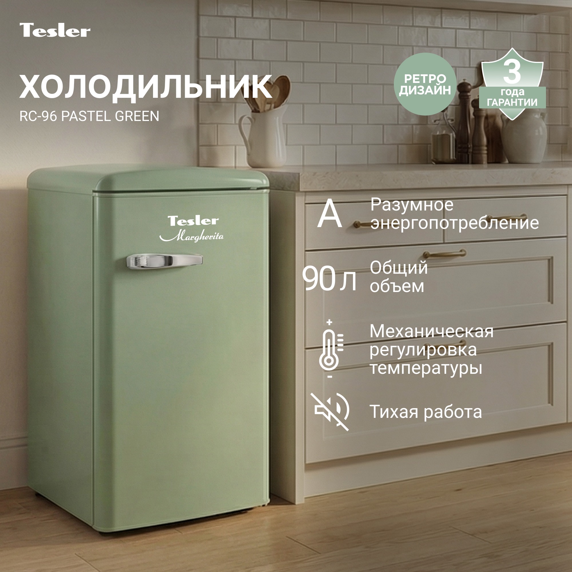 Tesler RC-96 сочетает в себе надежное охлаждение, элегантность и функциональность. Выполненный в минималистичном ретро-стиле, он придаёт особый шарм пространству вокруг, что делает его идеальным дополнением к кухне.