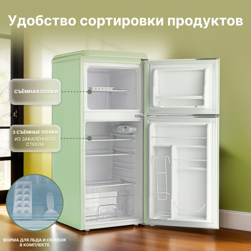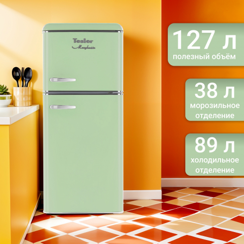 • Отдельностоящий холодильник Tesler RT-152 сочетает в себе классический ретро-дизайн и современные функции.