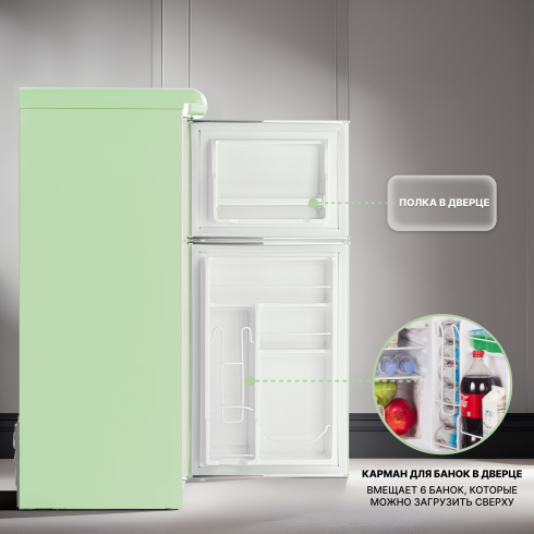 Холодильник RT-152 GREEN прекрасно сочетается с чайником, тостером и термопотом комплектов Elizabeth и Margherita. Приобретённая в дополнение к холодильнику, техника Tesler в ретро-стиле сделает интерьер кухни гармоничным и запоминающимся.