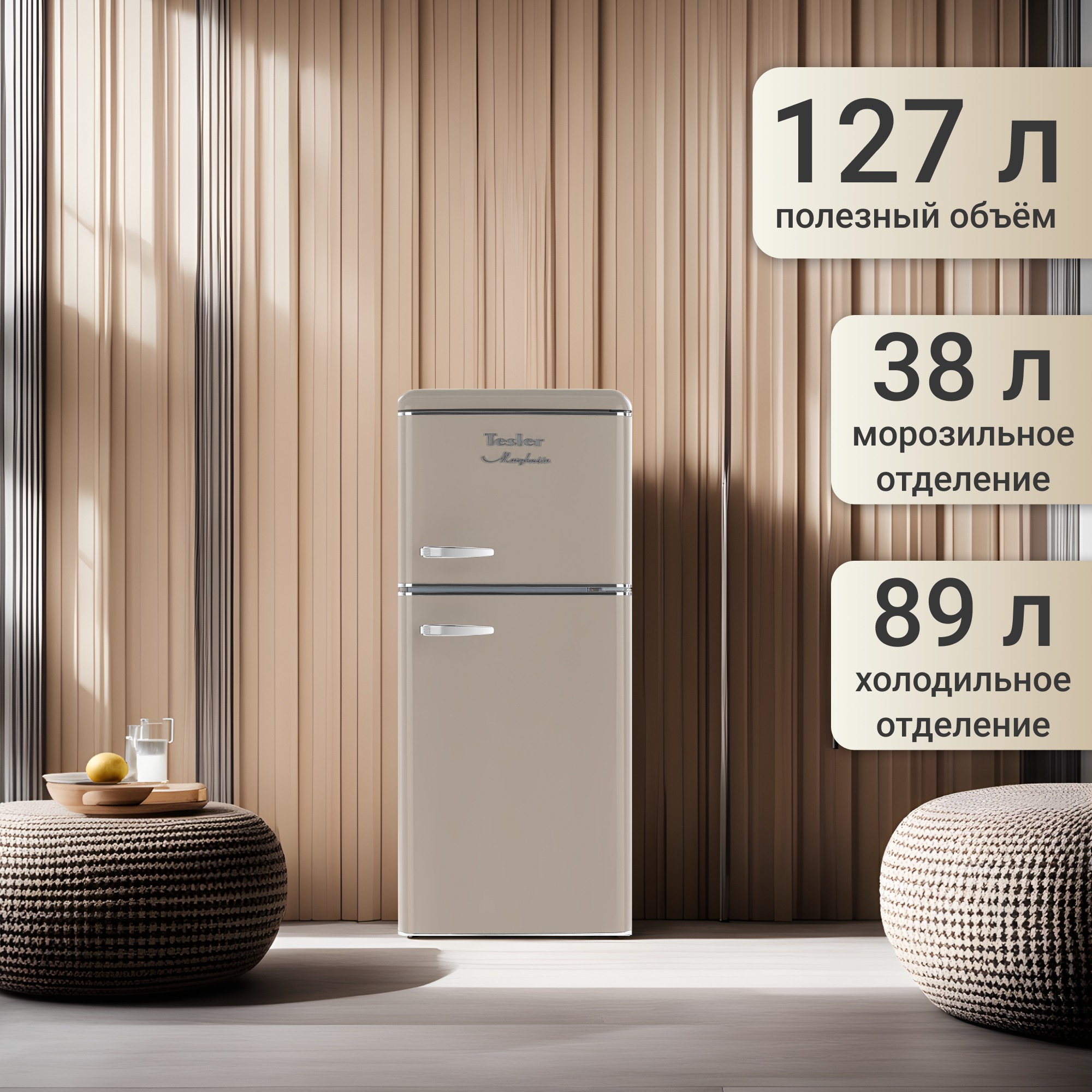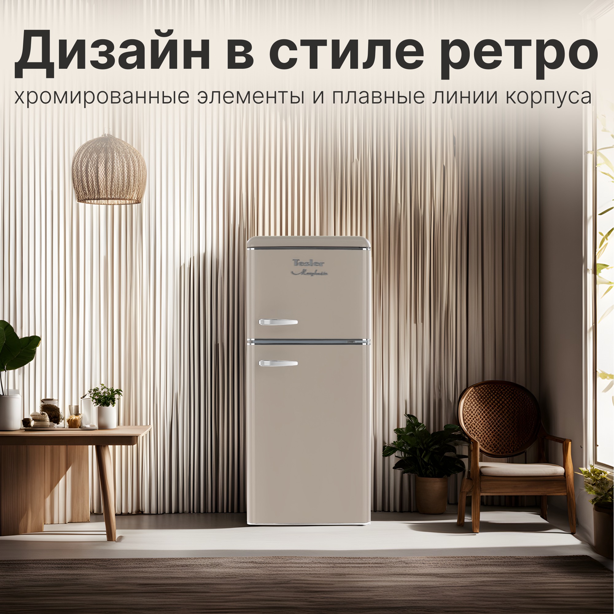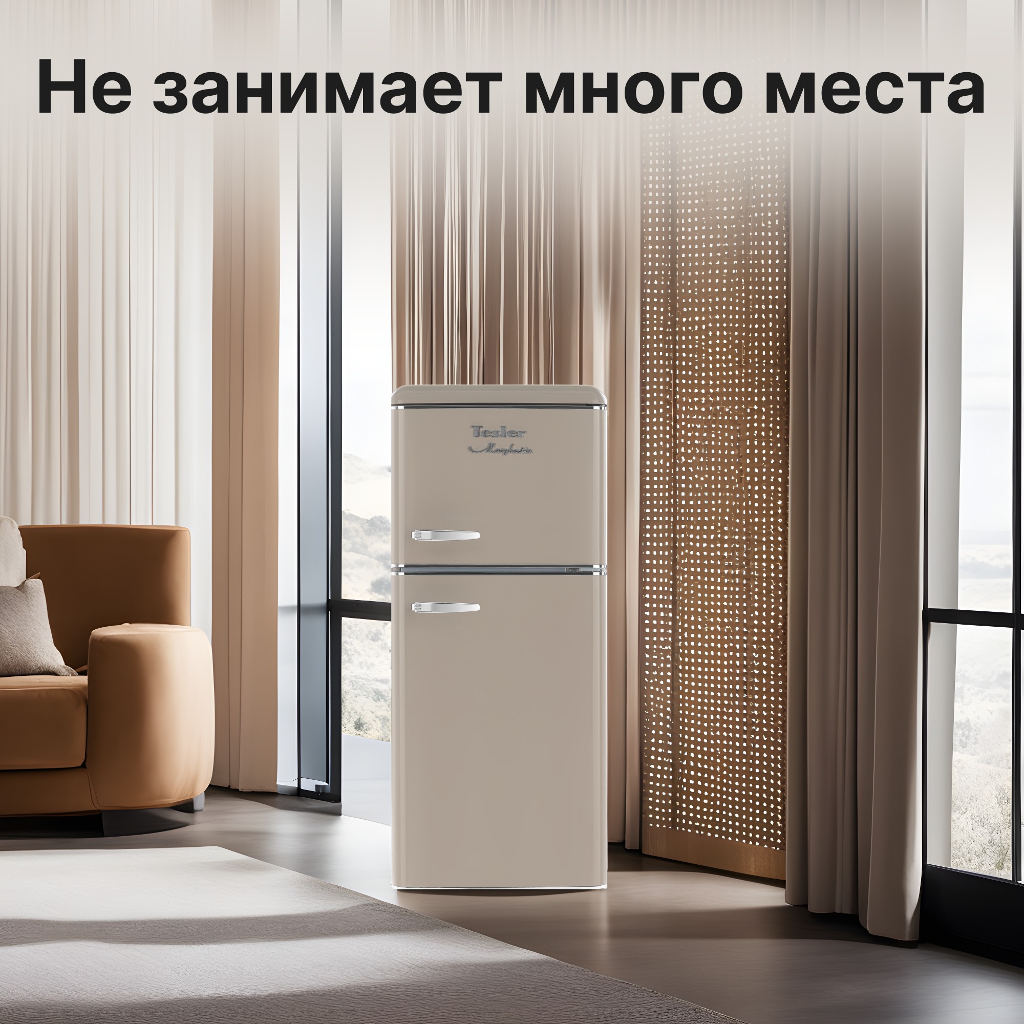 Холодильник RT-152 SAND GREY прекрасно сочетается с чайником, тостером и термопотом комплектов Elizabeth и Margherita. Приобретённая в дополнение к холодильнику, техника Tesler в ретро-стиле сделает интерьер кухни гармоничным и запоминающимся.