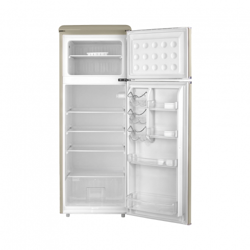 Tesler RT-215 сочетает в себе надежное охлаждение, элегантность и функциональность. Выполненный в ретро-стиле, он придаёт особый шарм пространству вокруг, что делает его идеальным дополнением к кухне. Хромированные ручки с надёжным креплением не ослабнут независимо от того, как часто вы открываете дверцы.