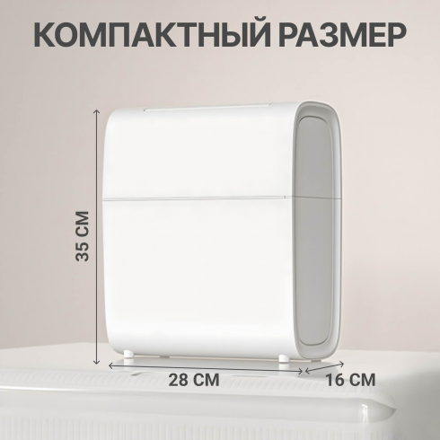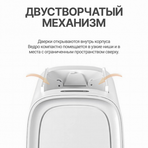 Устройство работает на основе микропроцессорного управления и высокоточного сенсора. Система активирует бесконтактное открывание крышки при обнаружении движения на расстоянии до 25 см. Данный принцип работы исключает необходимость физического контакта с корпусом. Сенсорные кнопки открытия и закрытия дверок, расположены на поверхности крышки и позволяют управлять работой дверок в ручном режиме.