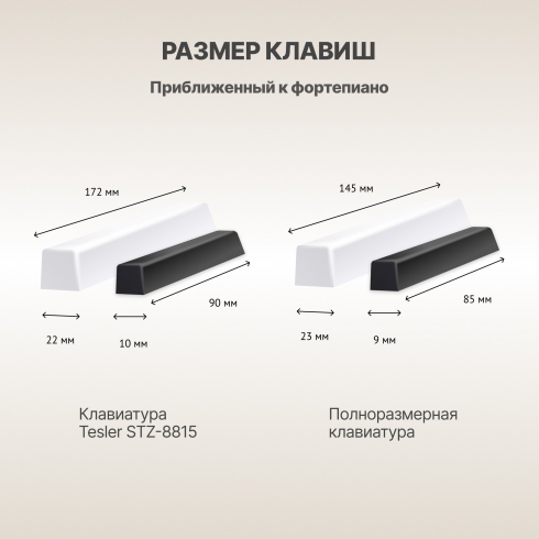 • Цифровое пианино Tesler STZ-8815 — это современный музыкальный инструмент с полноформатной взвешенной клавиатурой на 88 клавиш.